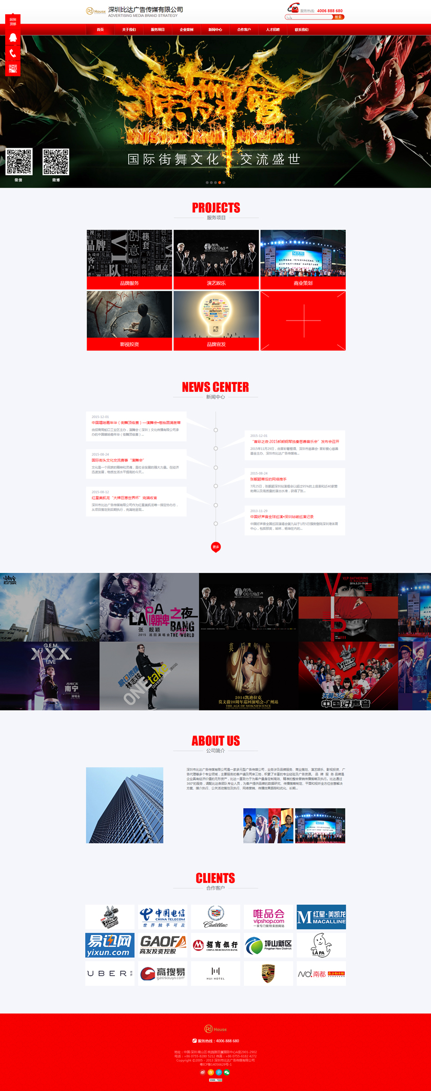 Project Description 深圳市比达广告传媒有限公司是一家多元型广告传媒公司,业务涉及品牌服务、商业策划、演艺娱乐、影视投资、广告代理等多个专业领域,主要服务的客户遍及两岸三地,积累了丰富的专业经验及广告资源。 Official website address 海北http://www.pdhouse.com I want to share